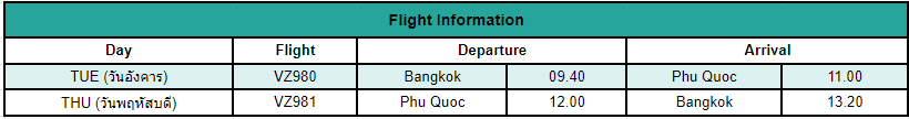 International Fligh Bangkok -Phu quoc (Roundtrip) by Thai Vietjet