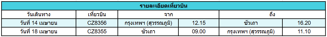 • ระยะเวลาเดินทาง: 14 - 18 เมษายน 2569