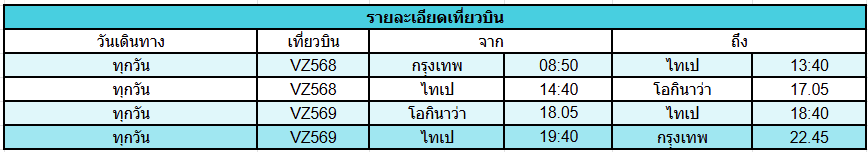 •  ตั๋วเครื่องบิน ไปกลับ กรุงเทพ - โอกินาว่า (via Taipei) โดยสายการบิน Thai Vietjet
