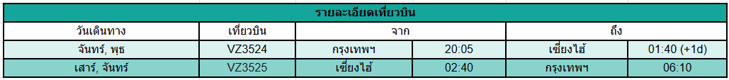 ดยเที่ยวบินขากลับจะออกเดินทางในเวลา 02.40 น. ของวันจันทร์
